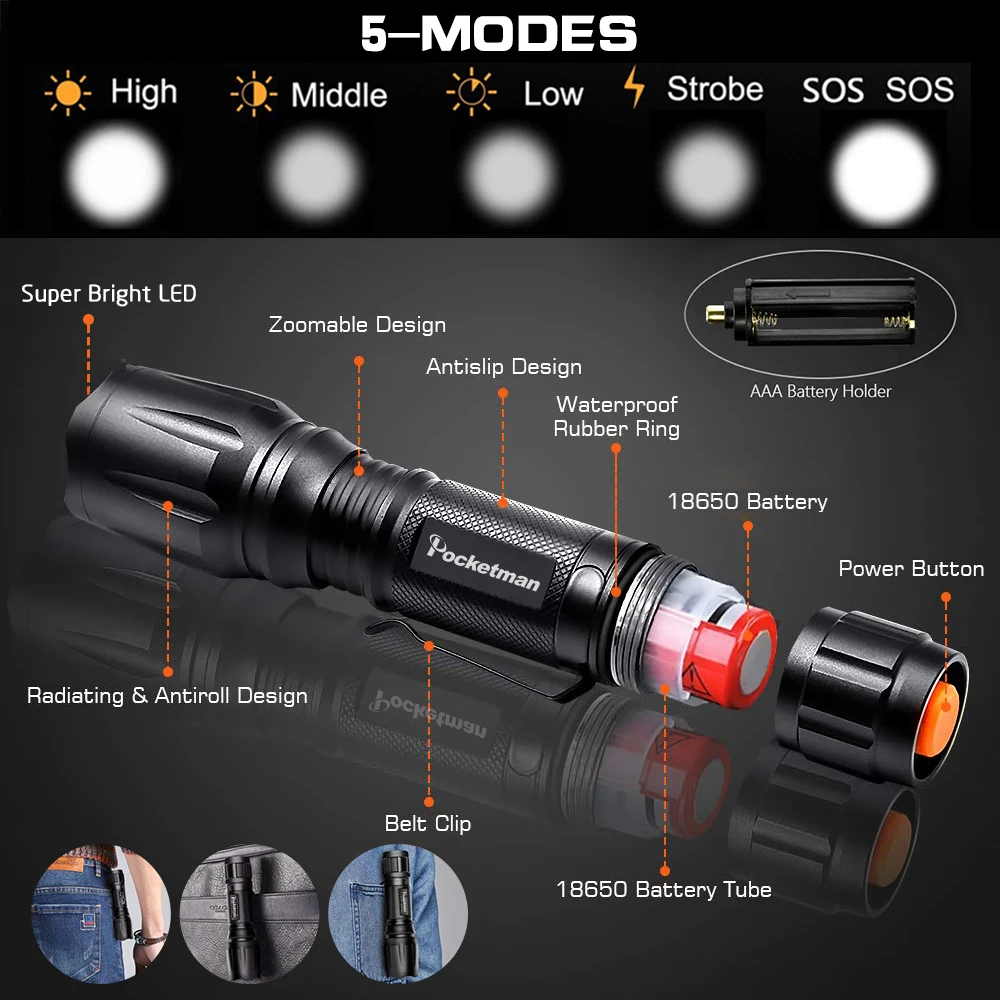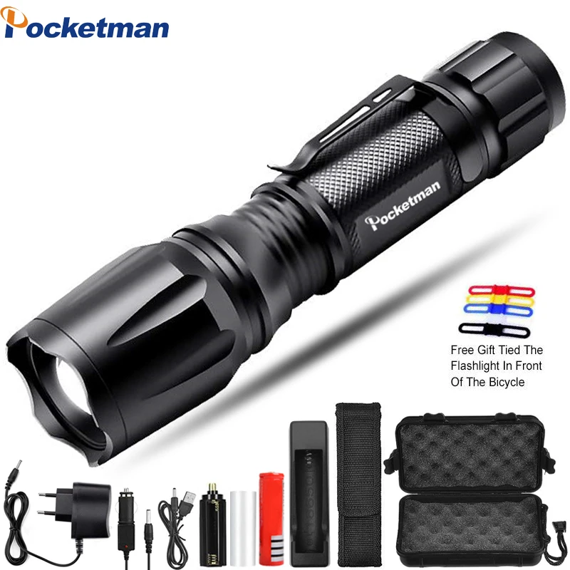 .image of Ultra-Bright 6200LM Flashlight XML-T6 linterna led torch Zoomable Portable 5 Light Modes Best High