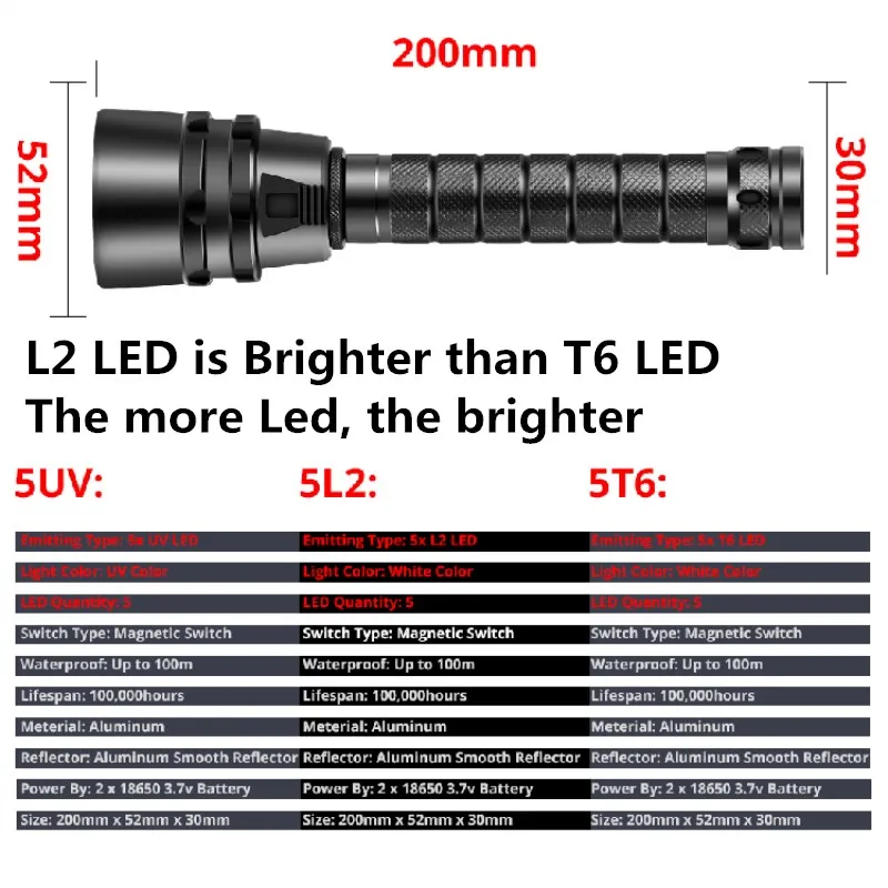 Limited Chance for Professional waterproof Diving Flashlight Torch 3T6 5L2 5UV 200m Underwater Scuba Diving Torch IPX-