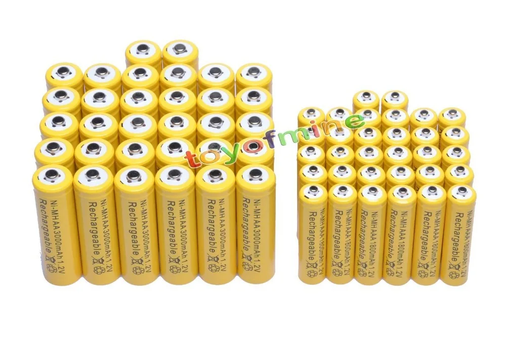 Best Price for 8/10/12/24/32/50pcs AA 3000mAh+AAA 1800mAh 1.2V NiMH Yellow Rechargeable Battery Cell 2A 3A RC Toys