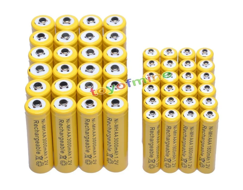 .image of 8/10/12/24/32/50pcs AA 3000mAh+AAA 1800mAh 1.2V NiMH Yellow Rechargeable Battery Cell 2A 3A RC Toys